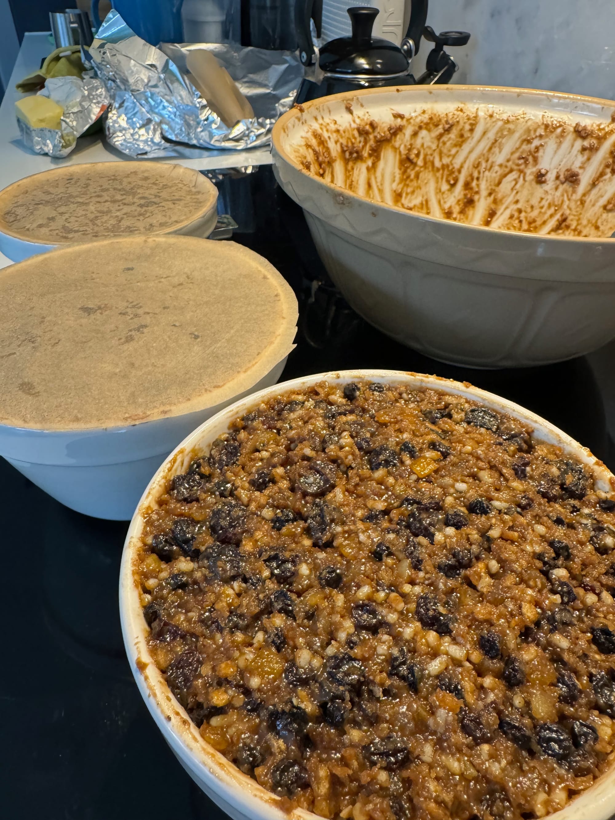 Mix all ingredients - consistency should be lumpy and thick (not watery) Mix all ingredients together, stirring well (this requires strong muscles in the wrists and forearms!!) Stand, covered for 24 hours but stirring whenever possible. Any visitors or guests are required to do their bit and stir too!!